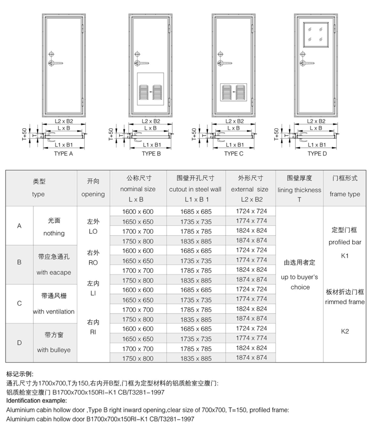 The aluminum cabin hollow door adopts high-strength aluminum alloy profiles and hollow structure design, which combines the characteristics of lightweight and high strength. It is specially developed for scenarios such as ships, rail transit, and mobile shelters that have strict requirements for weight and space. The product is manufactured through precision technology to meet special environmental requirements such as fire prevention, moisture resistance, and corrosion resistance, making it an ideal choice for modern cabin partitions.
