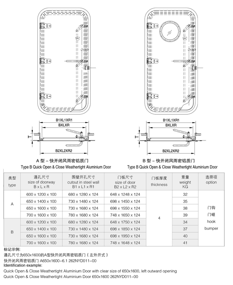 Quick-opening and closing weathertight aluminum doors are high-performance, lightweight, and durable protective doors designed for modern industrial buildings, ships, and specialized environments. Constructed from high-quality aluminum alloy and incorporating an advanced quick-opening and closing system, they offer superior wind and rain protection and sealing, while also being easy to operate and requiring minimal maintenance.