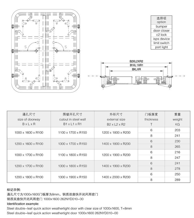The steel double-leaf rapid-opening and closing weathertight door is a high-performance, durable, and easy-to-operate protective door designed for industrial buildings, ships, and specialized environments. Constructed from high-strength steel and incorporating an advanced double-leaf rapid-opening and closing system, it ensures excellent windproof, rainproof, and sealing performance even in harsh weather conditions.